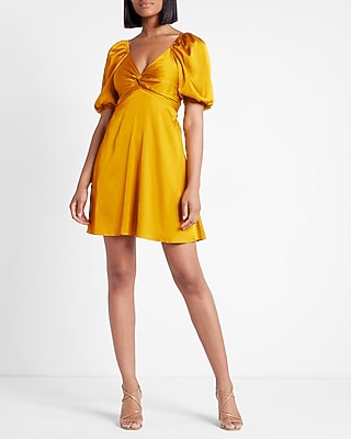 Satin Twist Front Puff Sleeve Mini Dress Express
